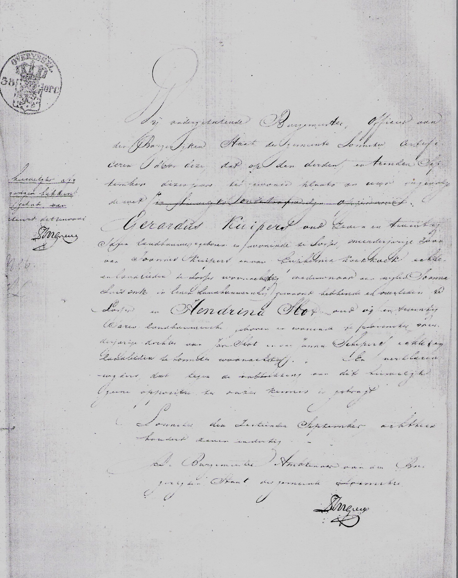 Bild: Slot_Hendrina_Gerardus_Kuiper_Akte_Huwelijksafkondiging_Losser_ Lonneker3_10September1837