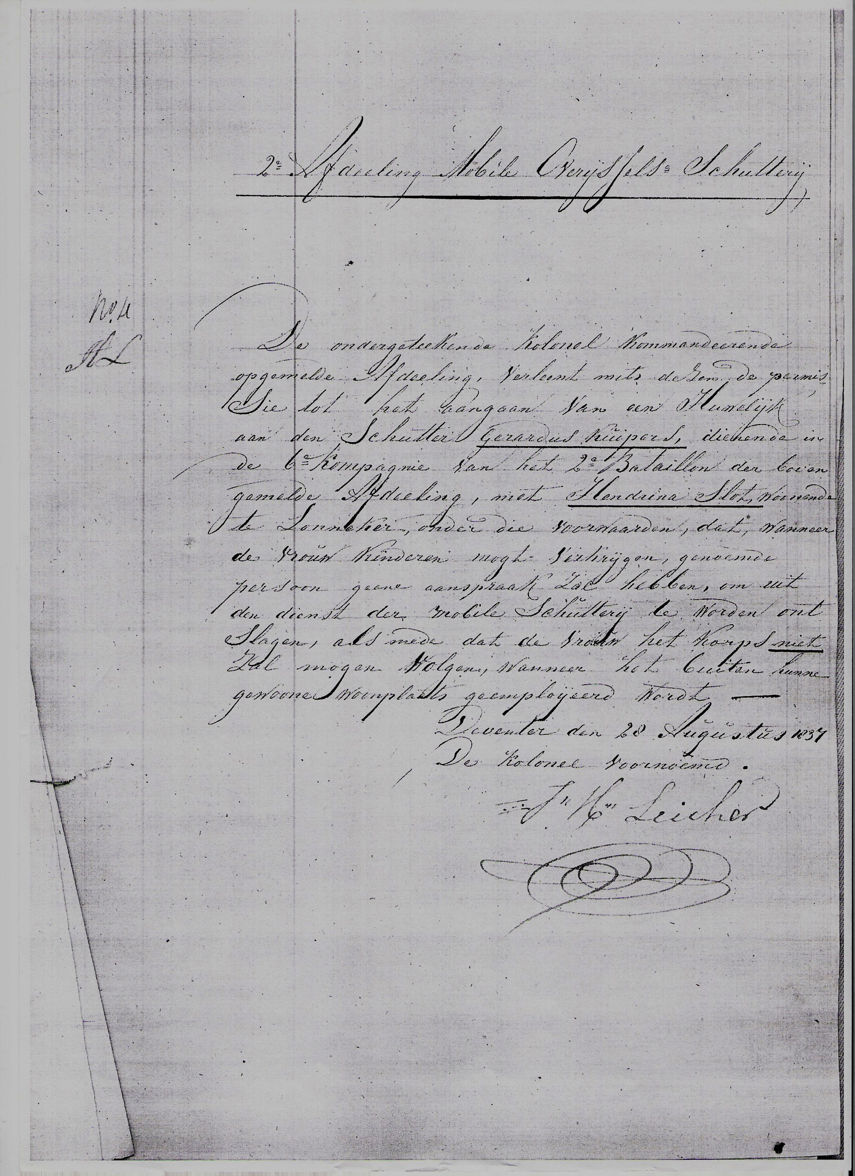 Bild: Kuipers_Gerardus_Erlaubnis_heirat_Deventer_28Augustus_1837